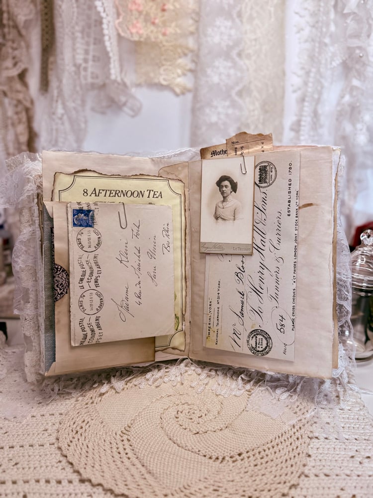A Country Diary of an Edwardian Lady β Quilted Junk Journal with Vintage Ephemera & Lace Brooch β¨Full flip-through is available to watch on my TikTok & Facebook β¨